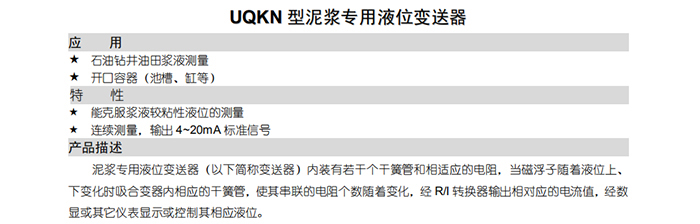 UQKN型泥漿專用液位變送器
